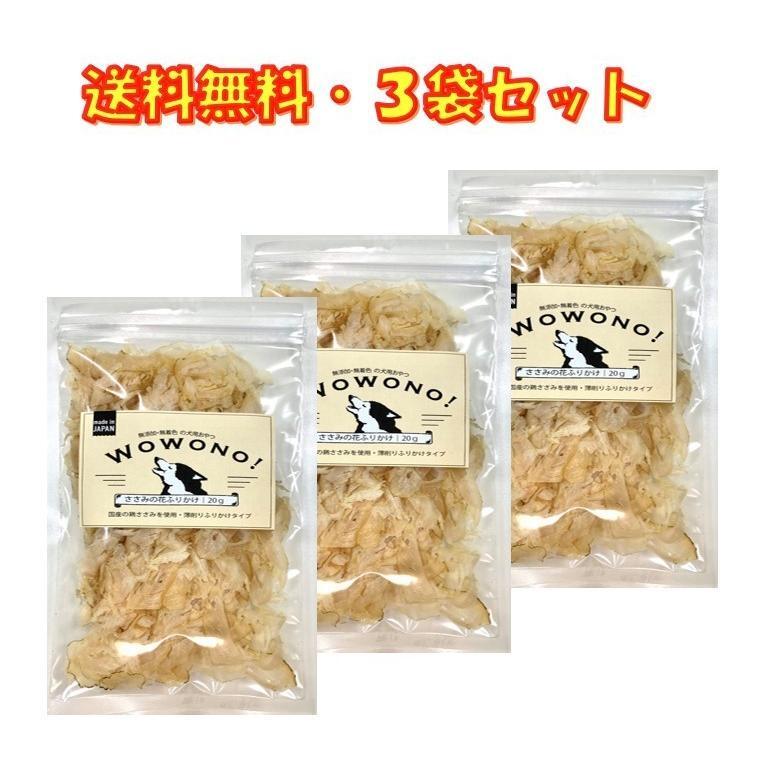 犬 猫 おやつ 無添加 国産 ささみの花ふりかけ 20g ×3袋セット Wowono! ワオーノ! 犬猫用おやつ ふりかけ 日本製