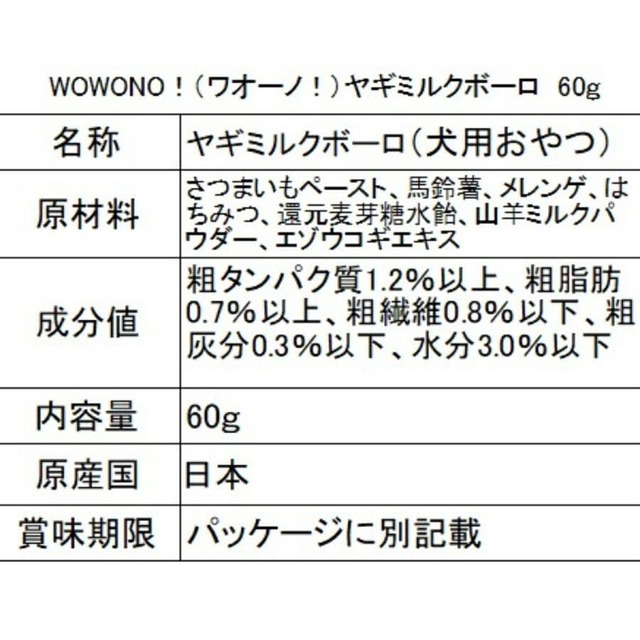 Wowono! ワオーノ!の犬用おやつシリーズ!ヤギミルクのボーロです。